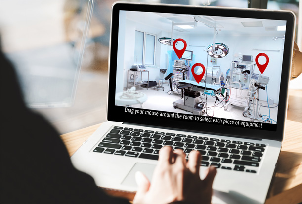 To do this, a camera is set up in the specific area/s and a sequence is filmed or photos are taken. Once the footage is ‘stitched’, hotspots are overlaid to enable interactivity.